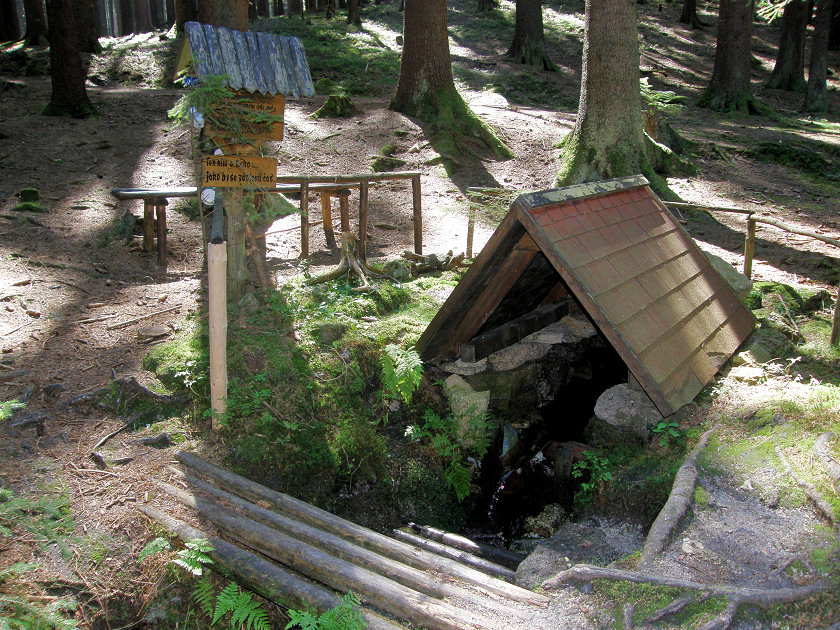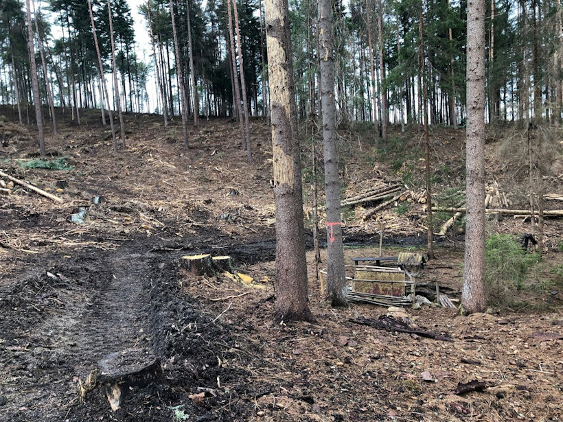 Duben 2020 - okolí studánky i prameniště samotné je zcela zvedastovné po těžbě kvůli kůrovcové kalamitě - viz aktuální foto