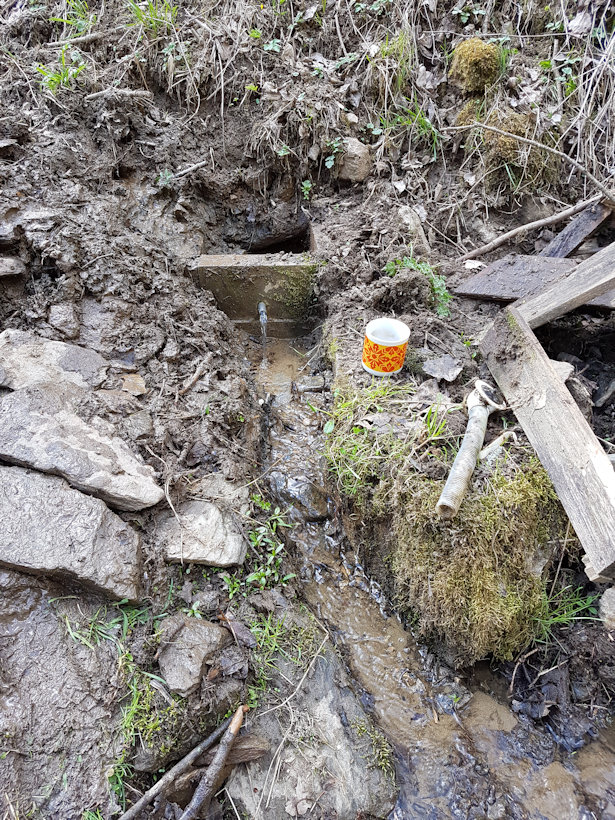 Jaro 2018 - divočáci vyhráli, poplenili studánku a je z toho zase kaliště. Vyčistili jsme jak to šlo. Foto Denisa Kvaltinová.