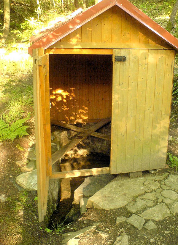 Listopad 2018 - studánka prošla výměnou budky, na začátku listopadu neudržovaná a zanesena nánosem listí.