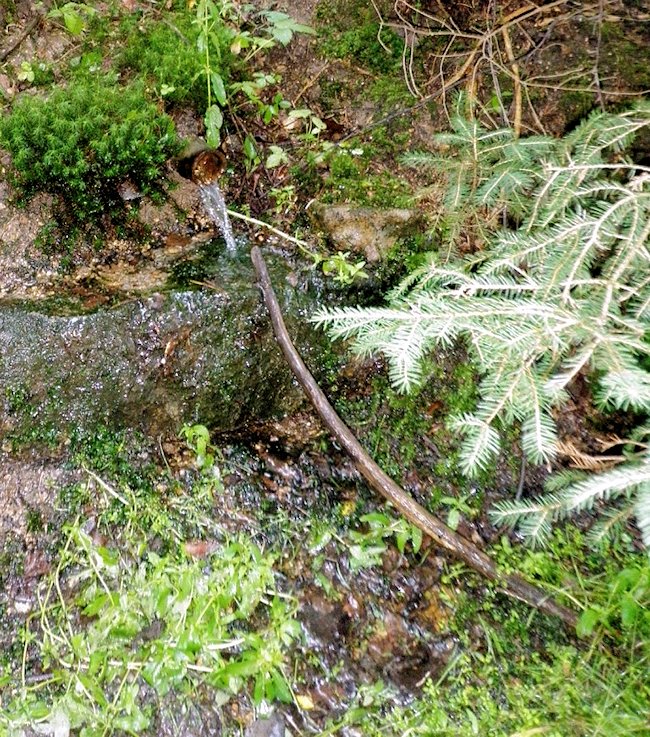 Pramen vytéká z vodovodního sběrníku, asi teče jen když je dost vody. Voda pitná.