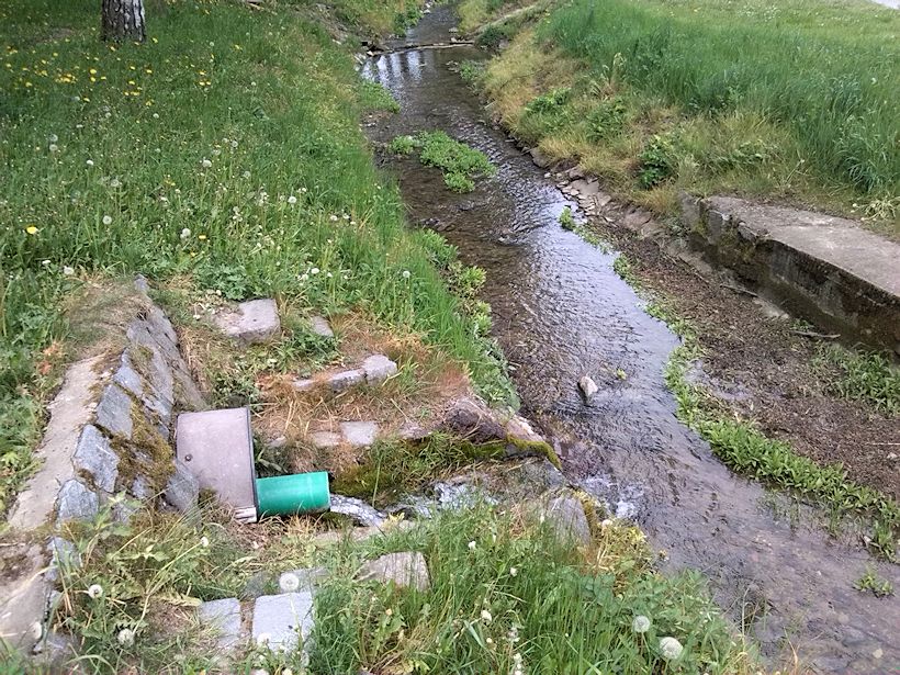 Září 2021 - pramen pravděpodobně napájí nedaleké koupaliště - aktuální foto Tomáš Hradský