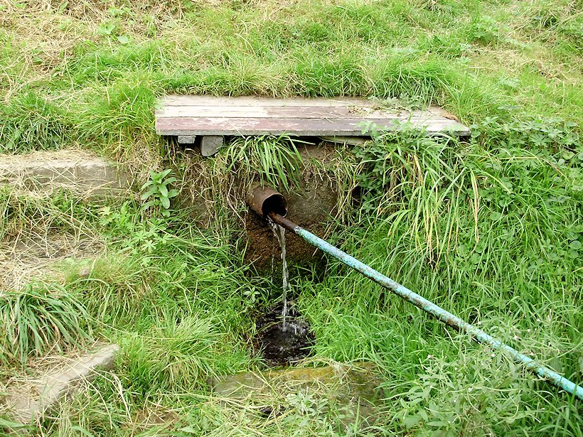 Říjen 2024 - studánka je již zastřešená a pěkně upravená, v době návštěvy voda vydatně tekla. Aktuální foto: Roman