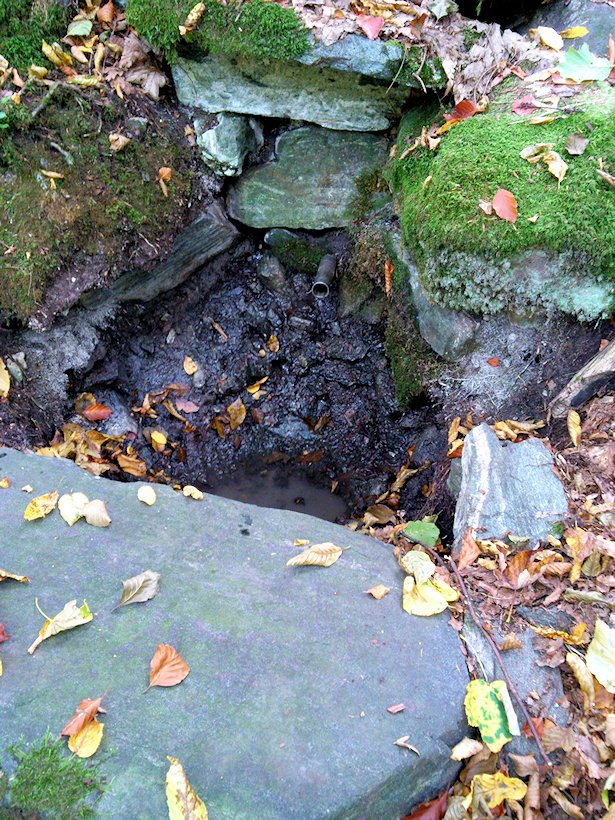 V období sucha jen kape, ale i tak je pod malé jezírko s vodou.