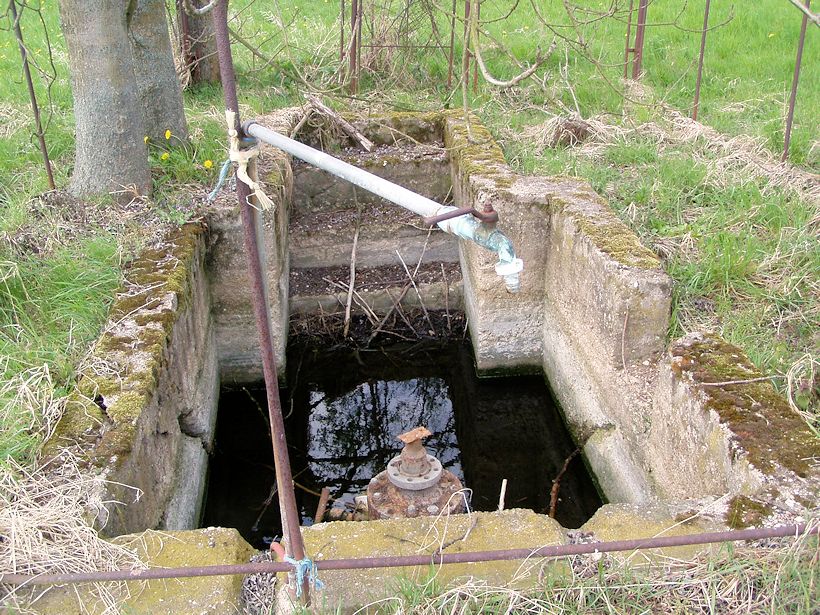 Slabě termální (cca 20°C) minerální pramen složením i chutí velmi podobný nedalekému pramenu jižně od Mlékosrb. Voda po otočení kohoutkem vytéká sama. Foto (duben 2014): Jan Řezníček
