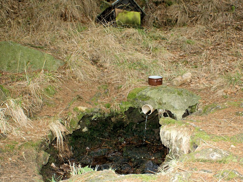 Drobný pramen v lokalitě U Šlejferků slouží jako zdroj vody rekreantům jak se dá usoudit z kastrůlku na fotografii.