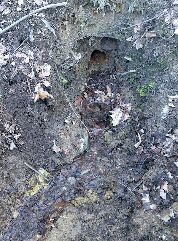 Zdroj byl původně nad cestou, výtok upraven pod stezku.