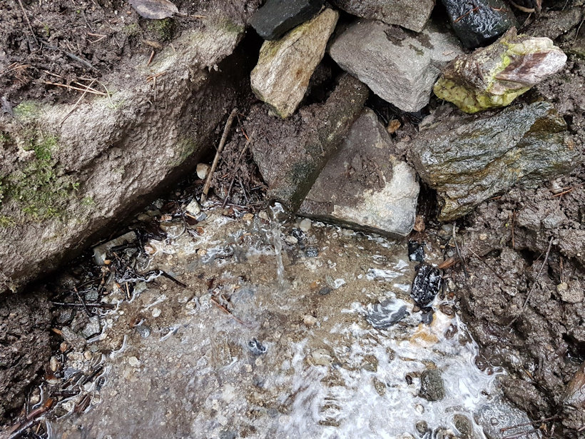 Leden 2020 - zdroj je již delší dobu je bez vody, zato však o cca 10 m níže vyvěrá celoročně pramen z trubky nad korytem potůčku - viz aktuální foto