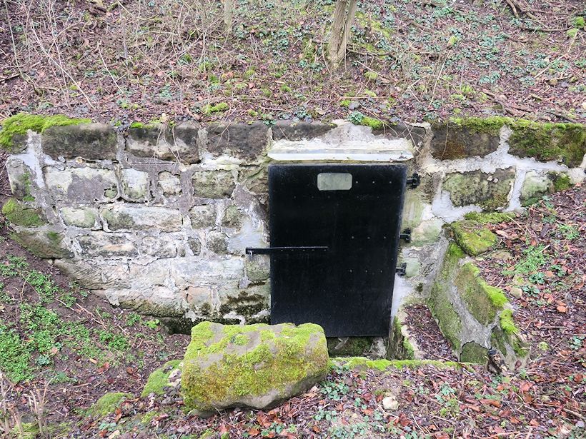 s nápisem zdroj pitné vody. Pod studánkou je vyvedena trubka s tekoucí vodou ze studánky.