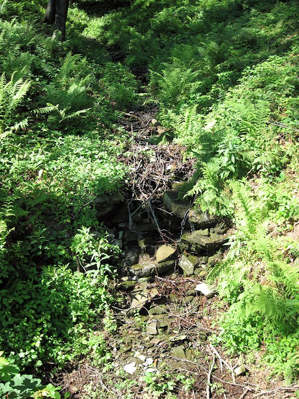 Pramen v ohybu lesní cesty, nedaleko od turistické trasy na Malý Javorník.