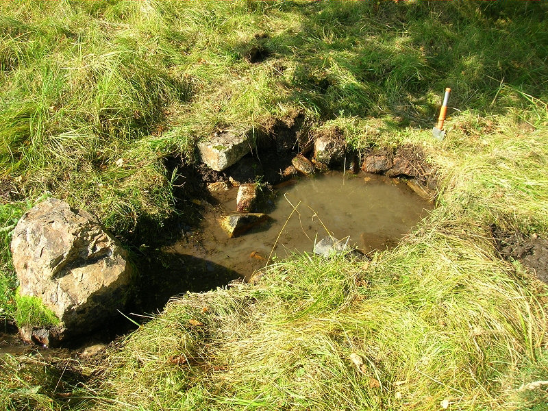 Aktualizace 2.11.08 Konečně se mi dnes, po mnoha návštěvách zde a čištění studánky, podařilo pod zdánlivě nekonečnou vrstvou bahna narazit na štěrkové dno! To je první úspěch při obnově studánky, ale práce ještě zdaleka nekončí...