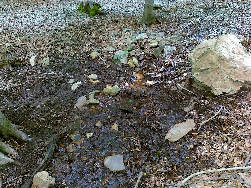 Červen 2015, M.Kulík: zdroj prakticky vyschlý, cca 20m pod ním pěkné kaliště černé zvěře (z cesty je hned vidět)