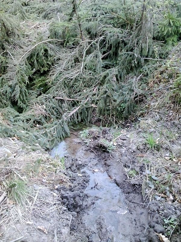 Foto z dubna 2014 - Petr Bláha. Pravděpodobně zmíněný pramen u vykácené paseky.