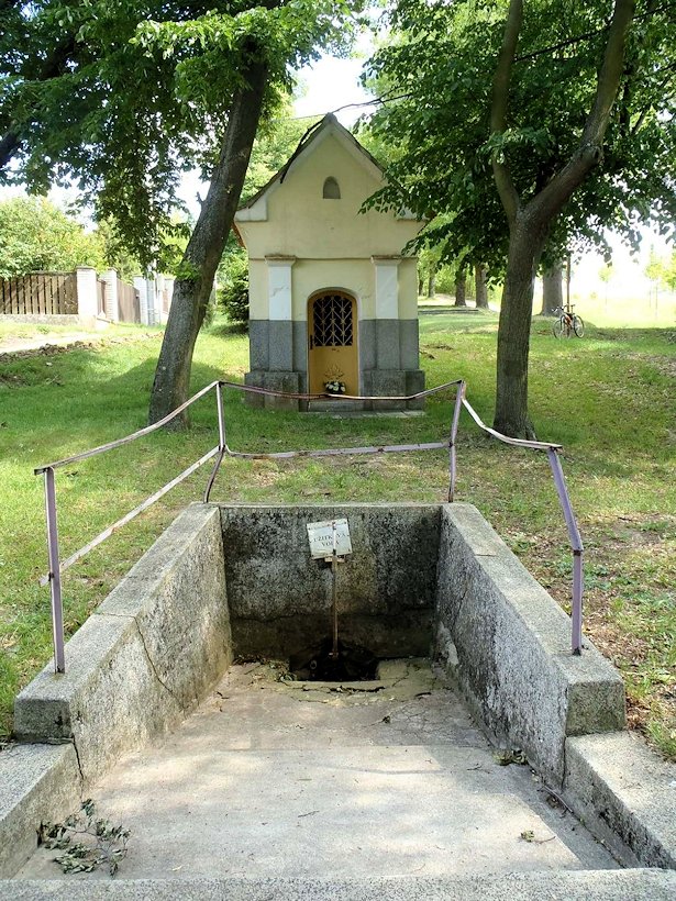 Původně studánka s údajně léčivou vodou, která uzdravila několik poutníků. Nyní voda vytéká ze zídky pod kapličkou a je označena jako užitková. Foto: Bohumír Strnad. Více info zde.