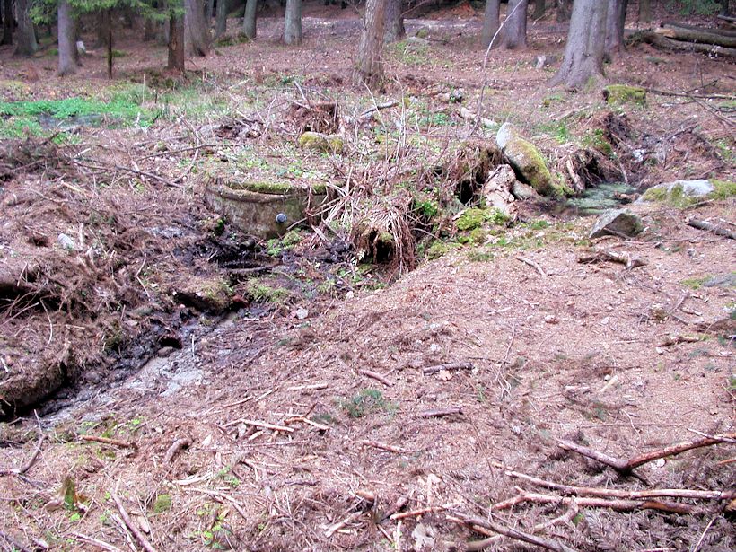 Březen 2023 - tato studánka dokonce dostala nové jméno a to U zvířátek. Je tu vyšlapaný přístup od lesní asfaltky, primitivní místo na posezení a pár polen pro lepší přístup. Skruž je již skoro k nerozeznání jak je obrostlá vegetací. Aktuální foto Dana Bartušková
