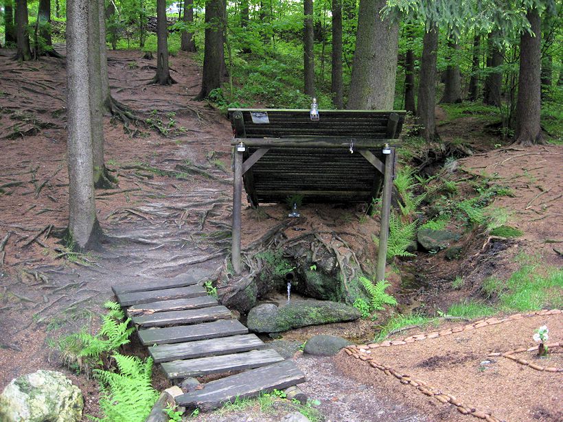 Zdroj vody, ke kterému si nejeden člověk dojde doplnit svou láhev. Tento pěkný přístřešek je vidět již od cesty skrz les.