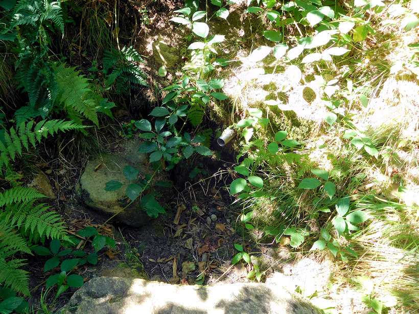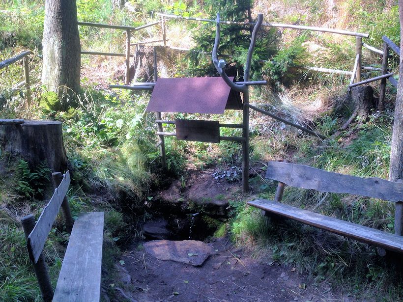 Srpen 2018 - studánka neteče, symbolická stříška zmizela. Foto Martin Mlečka.