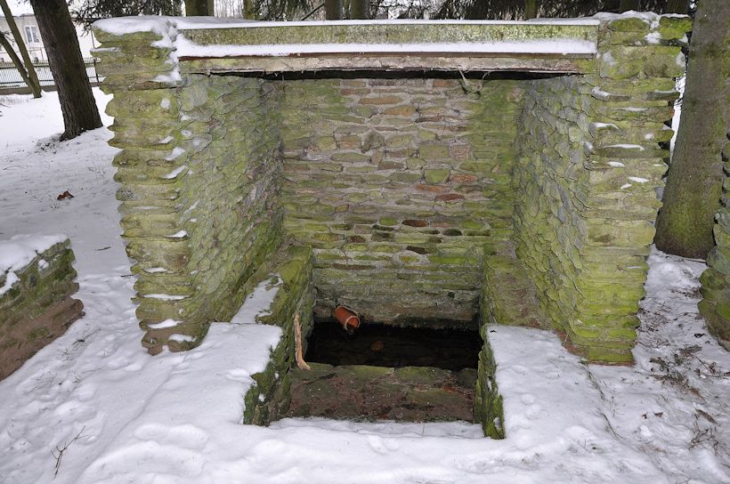 Upravený vývěr vody uprostřed obce. Aktuální foto z června 2016.