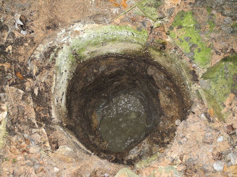 Prosinec 2016 - zcela bez vody, provedeno vyčištění - vyházení starých rozpadlých skruží, vybrání až na kamenité dno (1,2 m materiálu), na dně znatelný přítok, mezi vybraným materiálem nalezeny 2 lahve z jedné z nich vycházel silný zápach zkvašených jablek