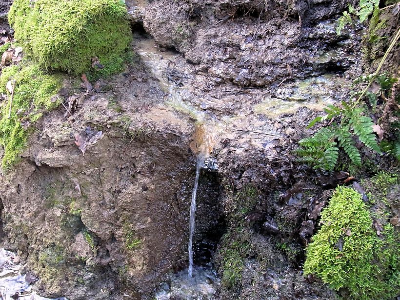 Asi 1 metr nad vodotečí vyvěrají z místních druhohorních (křídových) vápnito-jílovitých pískovců dva slabé prameny. Po necelém metru stékají do zmiňované vodoteče.